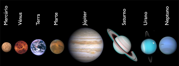 Os planetas são os principais elementos celestes que orbitam em torno do Sol - suas dimensões vão do gigante de gás Júpiter até o pequeno e rochoso Mercúrio,com menos da metade do tamanho da Terra.