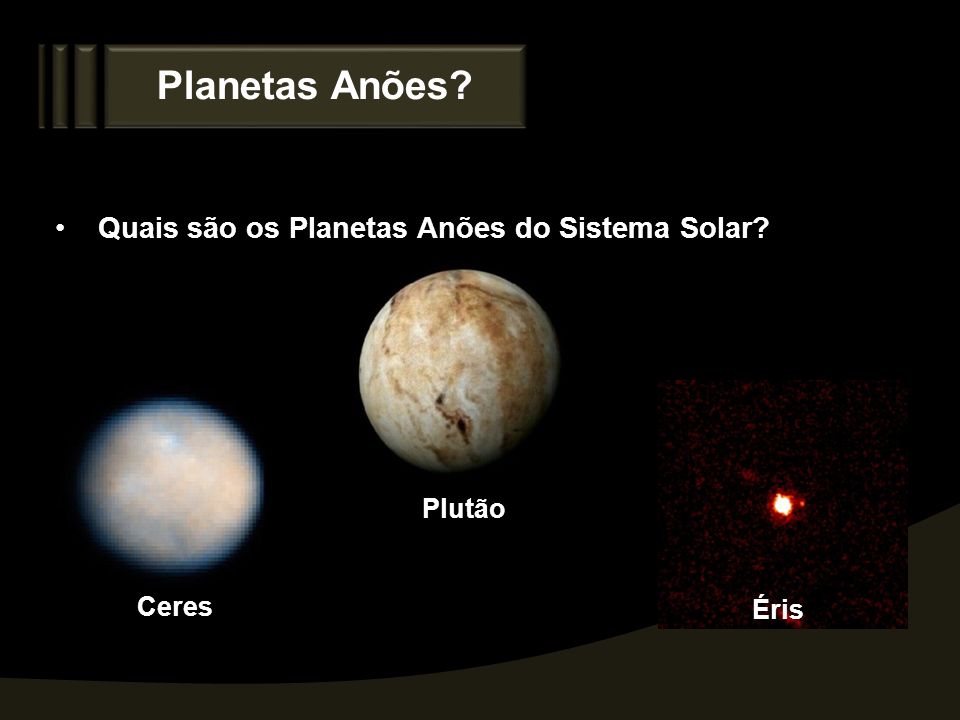 Por outro lado, Plutão, que até agosto de 2006 era contado como um planeta principal, depois da descoberta de vários corpos celestes de tamanhos parecido e até mesmo a de um maior, fez com que a União Astronômica Internacional decidisse considerá-lo um "planeta anão", juntamente com Éris e Ceres.